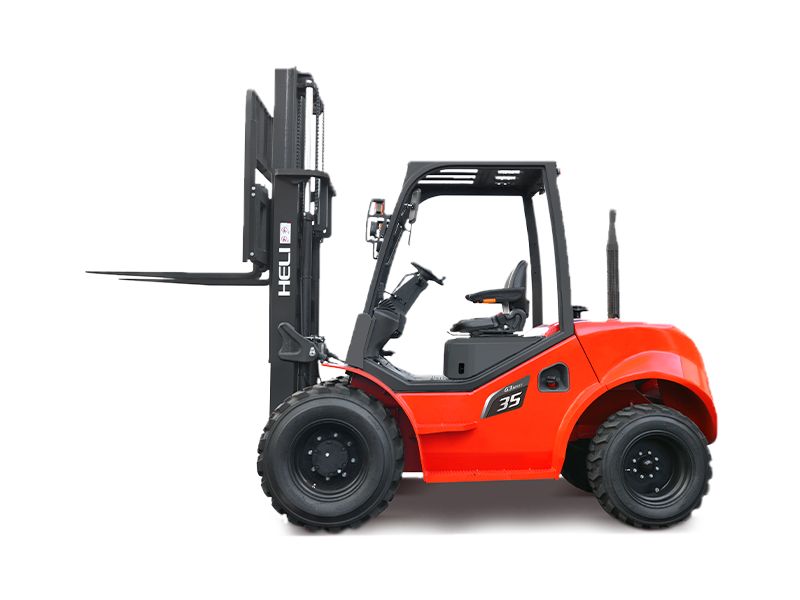 Der frontgetriebene 3t Geländestapler von HELI trumpft mit seiner stabilen und servicefreundlichen Bauweise.
